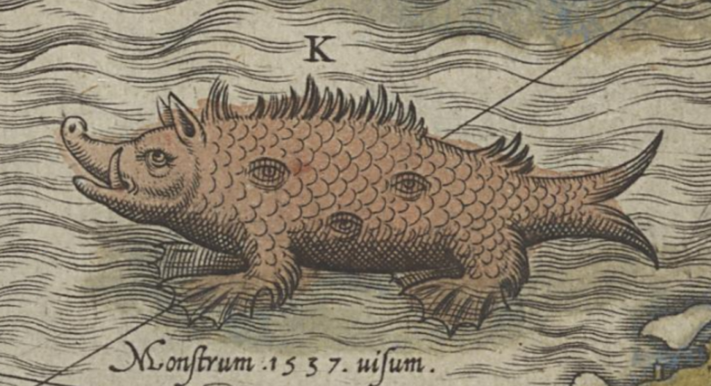 A version of the Sea Orm included in Conrad Gesner’s famous Historiae Animalium of 1558 is perhaps one of the most famous image of a sea serpent ever made, inspired by the one on Magnus’ map, and copied and reinterpreted hundreds of times since.